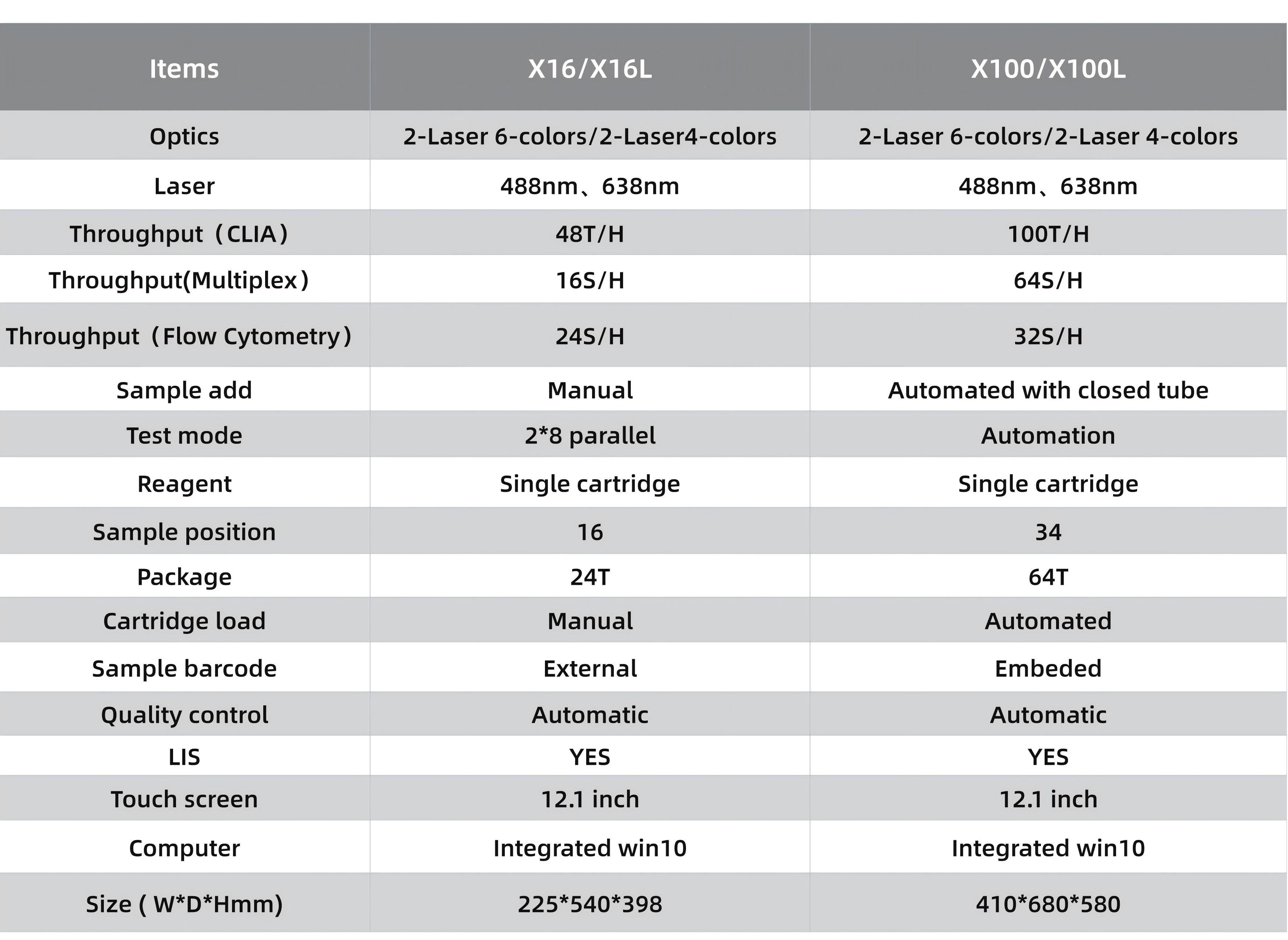 Throught put: 16 simultaneous channels & up to 64 tests per hour.