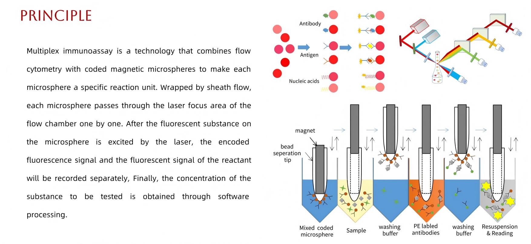 Special optical system: Self developed magnetic fluorescence encoding microsphere technology & Innovative magnetic separation technology.